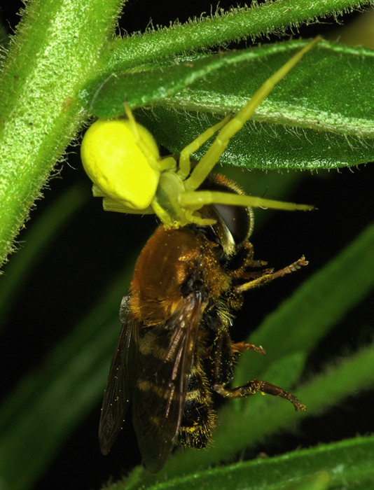 Il ragno dovrebbe essere Misumena vatia Thomisidae, ma la preda cos'è? mi sembra un Syrphidae, ma credo di non averlo mai incontrato prima.