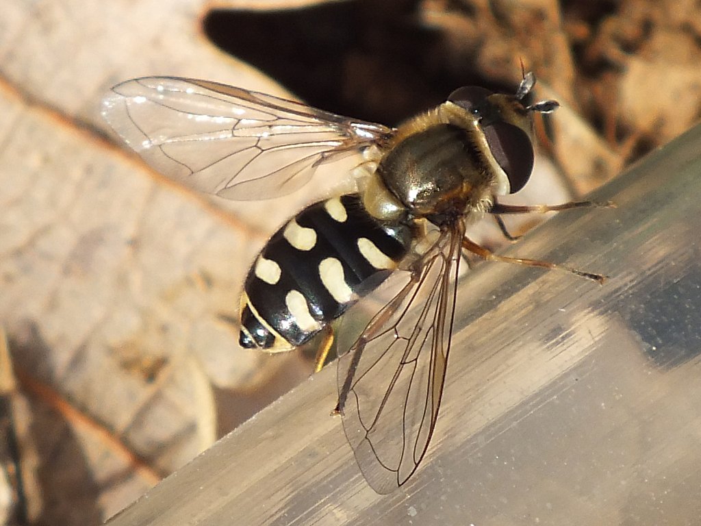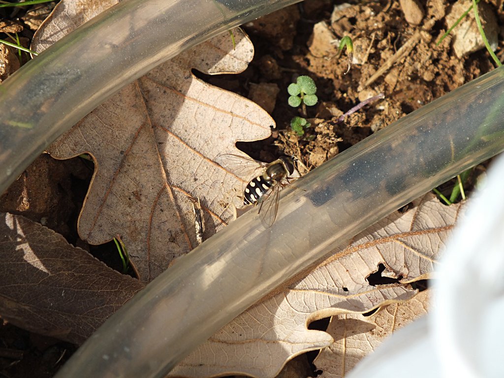 Guardate, con tanto posto, dove è andato a posarsi questo Syrphidae! Sul tubo del mio aspiratore, che avevo appoggiato un attimo a terra.