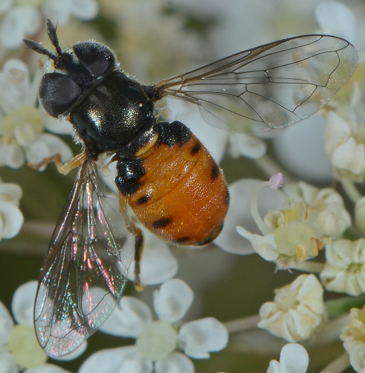Questo Paragus ha molto del bicolor, ma diverse cose non quadrano. Ad esempio la parte centrale della fronte nera, o le sei macchiette nere sui lati dell'addome. Purtroppo temo che anche questo, come molti Paragus possa andare a rimpinguare la già numerosa schiera dei Paragus sp.