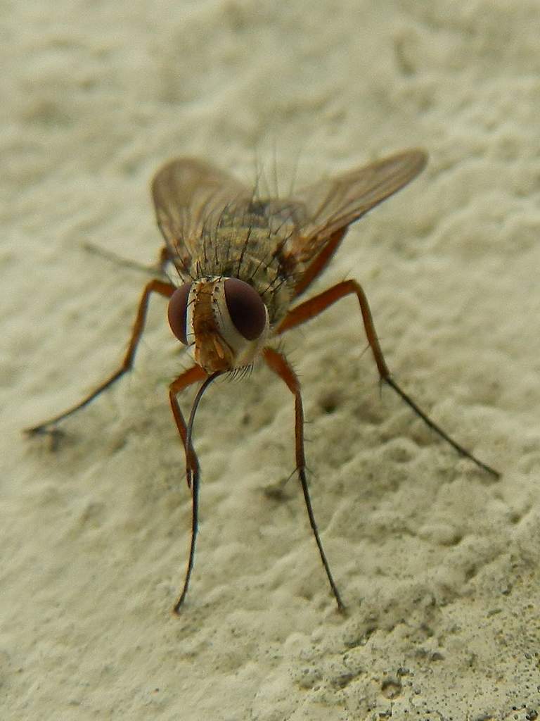 Curiosa questa mosca, sembra stia perforando un muro di cemento.