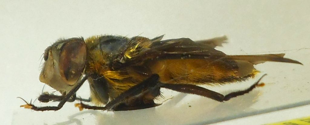 Riprendo questo topic poichè qui http://www.entomologi.no/journals/nje/2 ... volden.pdf ho potuto avere elementi per confermare la diagnosi di Carlo: inserisco altre due foto in cui si vede la "peluria" dorata dei lati del torace e una da sotto in cui si rileva il colore chiaro della base dei metafemori, caratteri propri della specie.