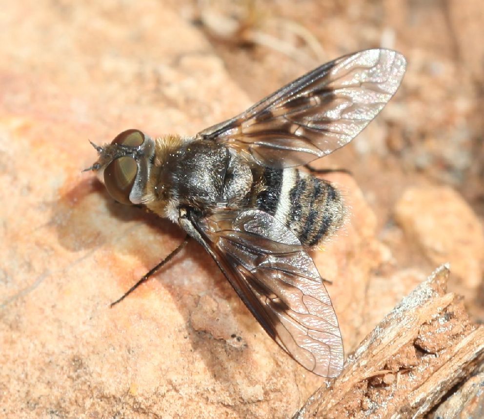 Con le caratersistiche morfologiche (banda pleurica formata da peli squamosi e non da squame, palpi gialli. ombreggiatura dell'ala ecc..) arrivo facilmente a Thyridanthrax pespicillaris ma i genitali non corrispondono, hanno più similitudine con quelli del Thyridanthrax hispanicus segnalato per la sola penisola Iberica o con il Thyridanthrax nebulosus ma entrambi hanno caratteristiche morfologiche differenti.