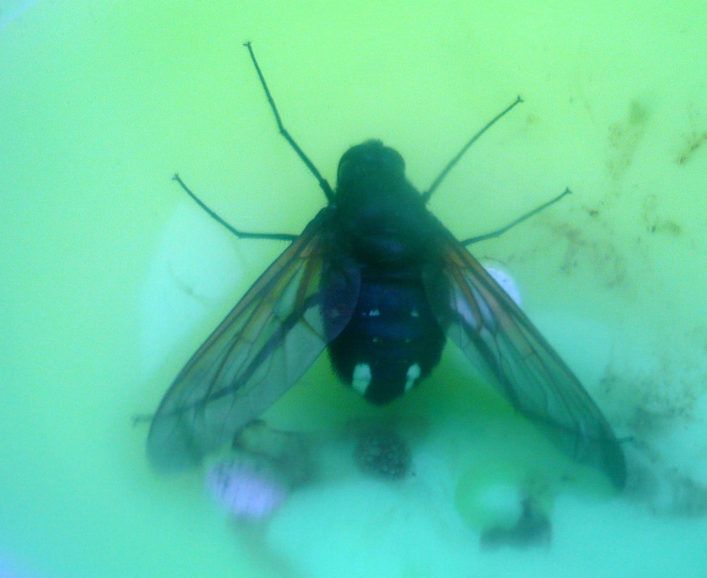 Ero a fare tutt'altro che cacce entomologiche,quindi il retino manco a parlarne,svolazzante con volo frenetico questo bel moscone era a caccia d'ombra con queste giornatine di sole a più di 30°.Io mi precipito in maccina,ma non so cosa prendere per acchiapparlo,solo una cosa trovo,una pallina di plastica (quelle delle sorpresine dei distributori) lasciata lì da mia nipote. Vabbè meglio che niente,e il pensiero và al Chryside :D