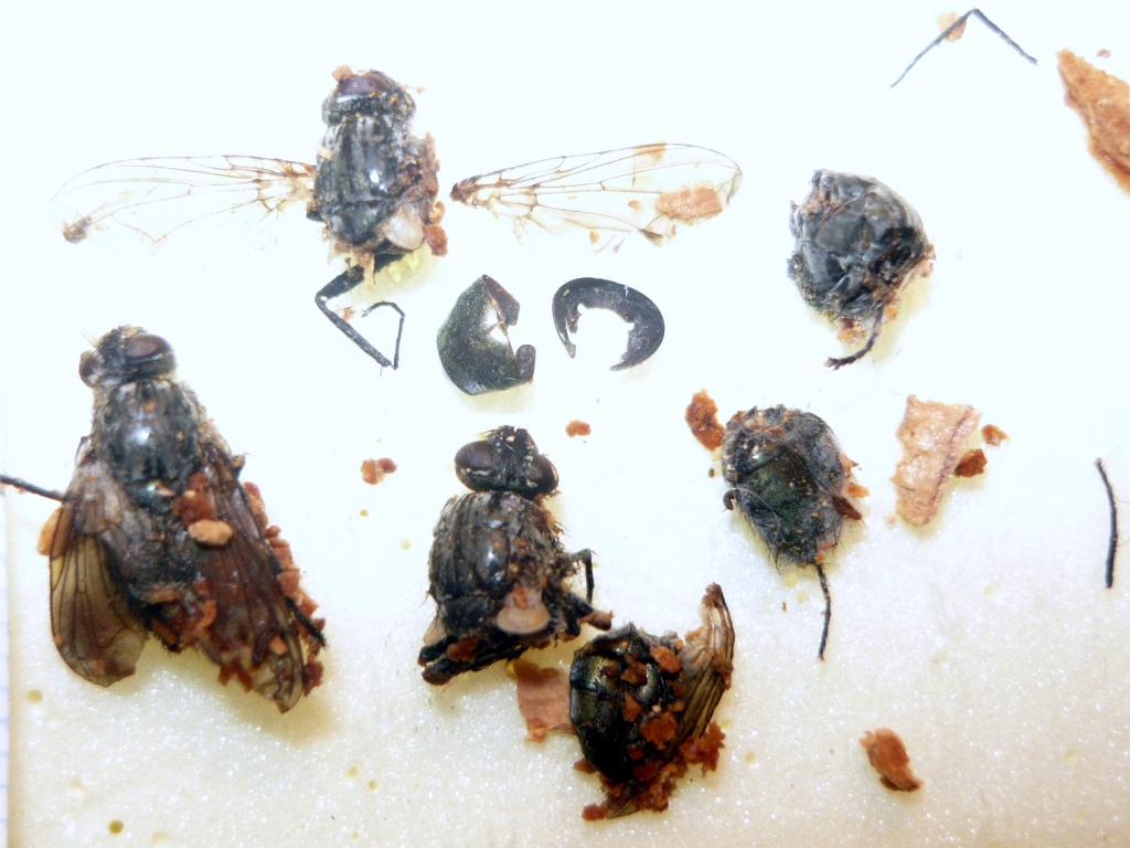 Buprestis? magari, mai viste quì Quello che rimane di quelli che sembrerebbero ben quattro mosconi appiccicati e bagnaticci tutti morti stipati in un sol buco