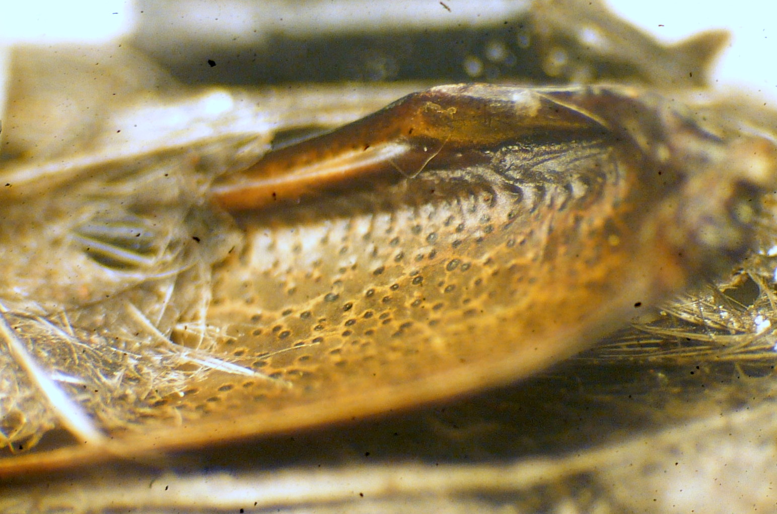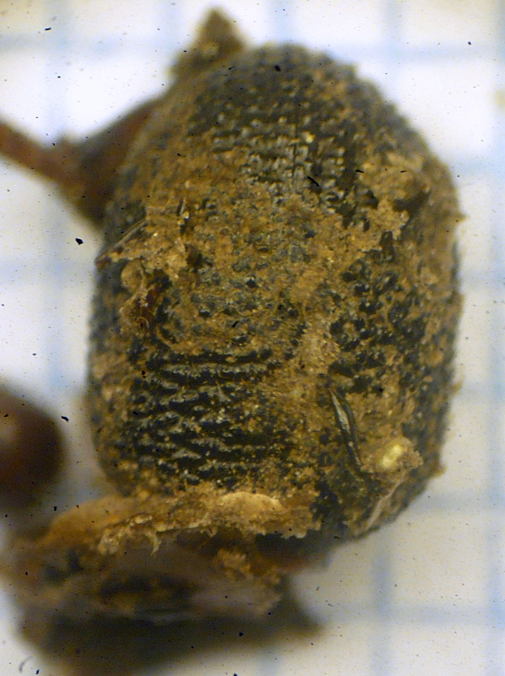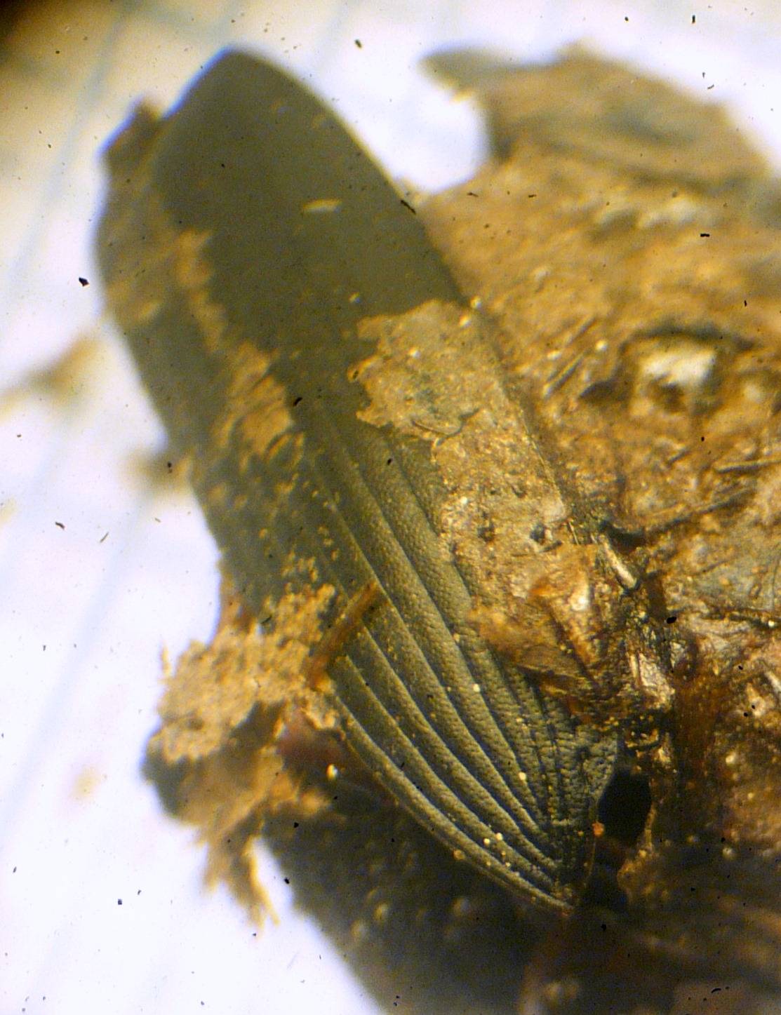 Si intravede un elitra granulare con sfumature verdi