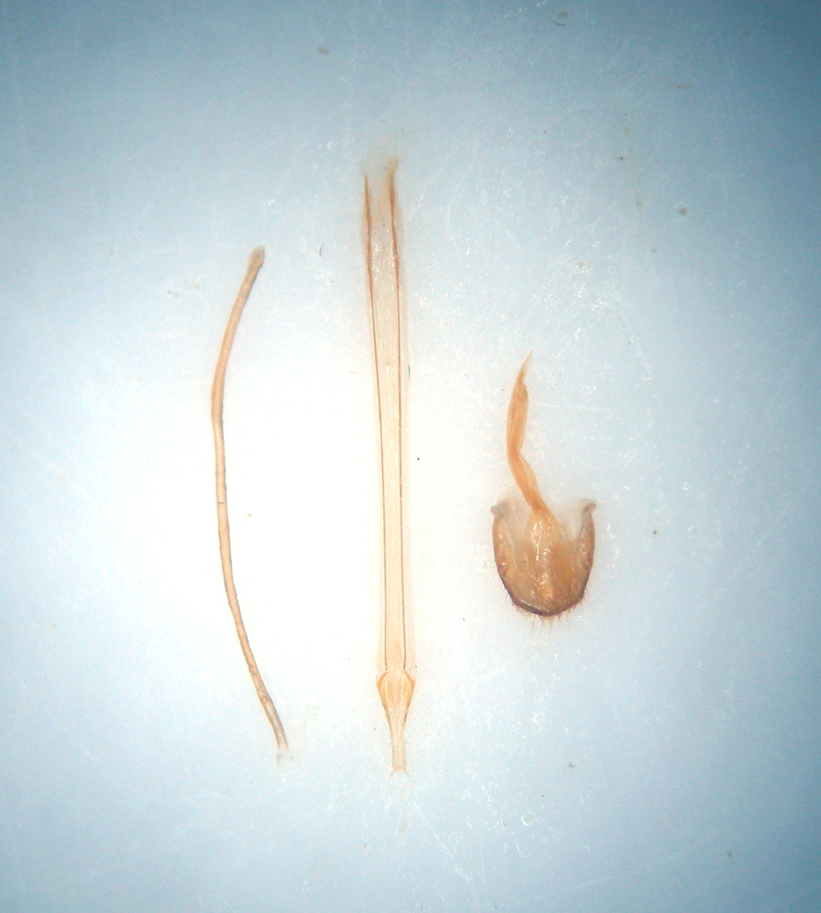 non sono queste le strutture che dovevi esaminare che sono quelle più esterne, quella centrale è l'ovopositore, ma quelle più interne contenute nella borsa copulatrice e che sono costituite nella strangrande maggioranza dei casi da due placche uguali e simmetriche e una parte mediana che nelle specie del gruppo ha una forma a u o v. Vedi esempio nella foto allegata.