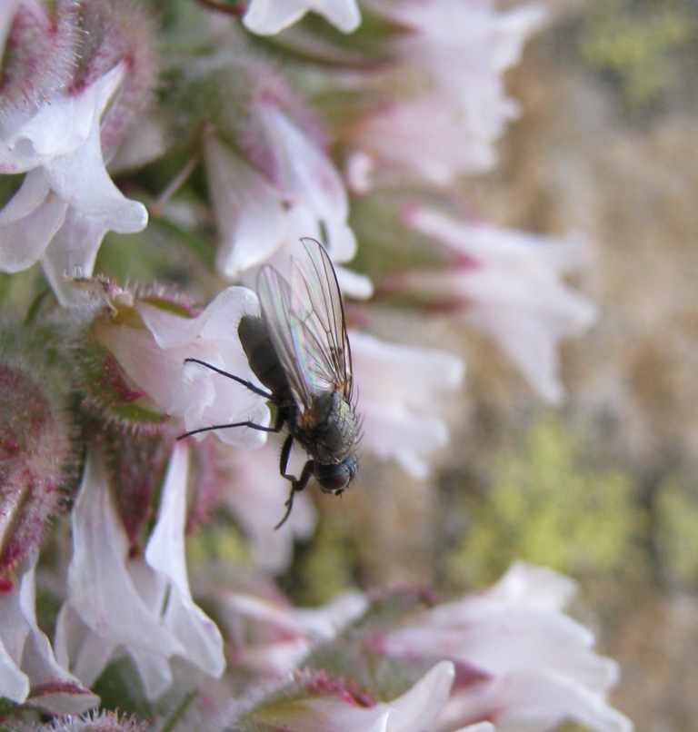 Salve, mi sapete dire a che famiglie appartengono queste mosche? le ho fotografate in Valle Gesso (CN, Alpi Marittime) a quota 2430 m, nel mese di agosto 2011.