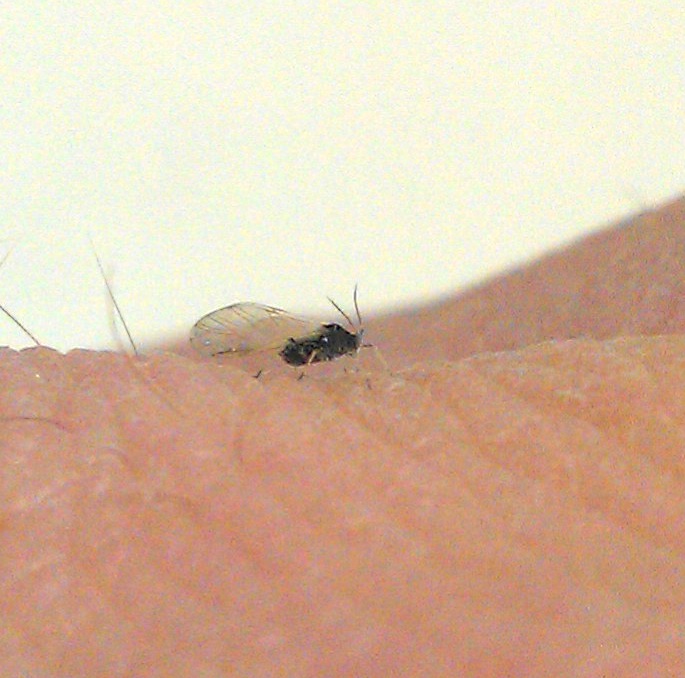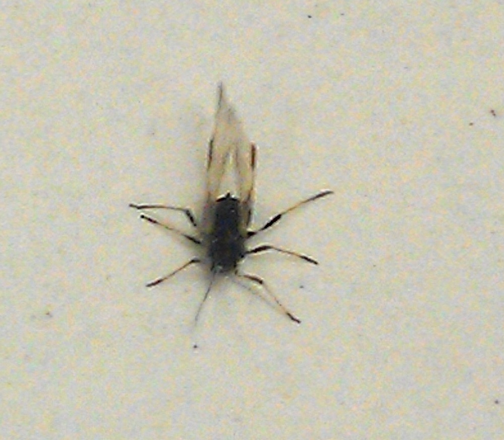 Un aiuto per tutti: l'insetto è lungo 2/3 mm, ha il corpo scuro e 6 zampe metà gialle e metà nere, le ali sono 2 e più grandi di tutto il resto del corpo.