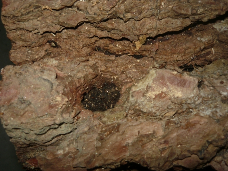 Calcophora mi sembra improbabile perché i Buprestidae preferiscono scavare fori di uscita perpendicolari alle fibre. resterei sui Cerambicidae. e Arhopalus è il maggior indiziato. La chiusura del buco, però, è strana. Non sono le solite fibre di legno lunghe. Non è che invece si tratta di un imenottero che ha riutilizzato un foro vecchio?  luigi