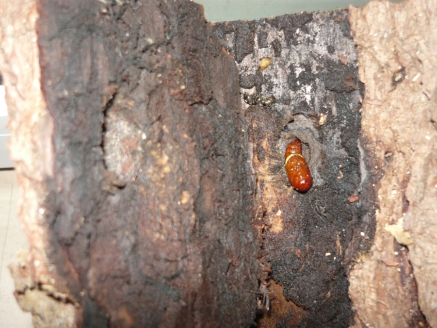 Pensi che sia stato un bruco opportunista che ha usato il foro, oppure che sia un Sesiidae che si è sviluppato nel legno? Non riesco a distinguere se la crisalide ha dei dentelli sui segmenti posteriori.  luigi
