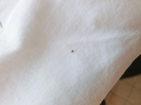 Salve. Ho trovato sul nostro letto questo minuscolo insetto che non riusciamo a capire cos'è. Ci siamo trovati delle piccole punture sul corpo, e adesso non riusciamo a dormire perchè sentiamo che ci camminano da per tutto. Abbiamo già provato a spruzzare insetticida vari, e anche a lavare tutto (lenzuola, coperte, etc. ) a 90 gradi e a stirare tutto a vapore, a riempire le stanze con insetticida, aceto, etc. ma stamattina mi sono trovato un altro animaletto sulla camicia da notte. Sembra che non muoiano! Aiuto, per favore. Non sappiamo cosa fare!