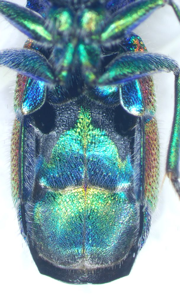 Altro carattere che invece esclude cylindrica è la forma del pronoto. In cylindrica il pronoto è fortemente allungato (come in daphnis sensu Linsenmaier) mentre in questo esemplare ha una forma normale.