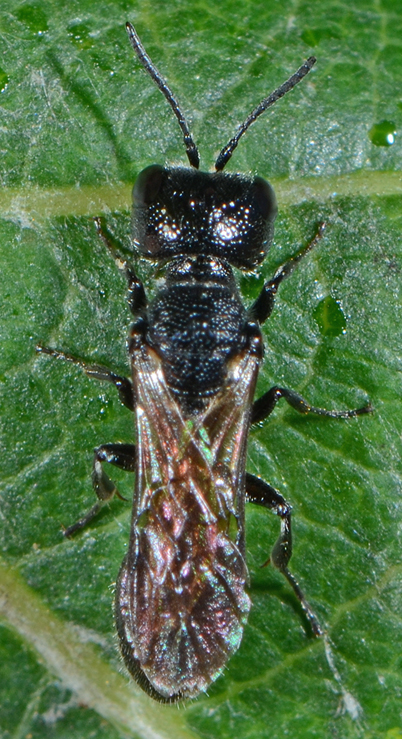 Piccolo imenottero (3-4 mm) su salice. Potrebbe essere un Chalcididae? sul salice larve di Chrysomelidae, ma non di lepidotteri. Non so se ci siano Chalcididae parassitoidi di Chrysomelidae (sempre che si tratti di un Chalcididae). |