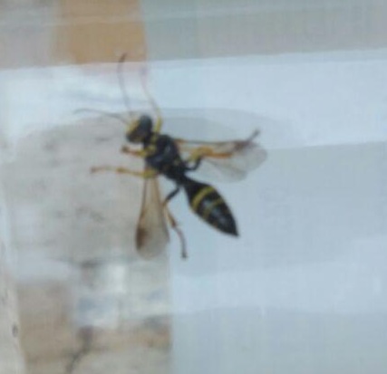 Non è un vespide, è un crabronide (o sfecide secondo classificazioni meno recenti), direi del genere Gorytes. Ovviamente è un adulto, le sue larve e pupe sono completamente diverse. Questi crabronidi allestiscono semplici nidi nel terreno, all'aperto (talvolta anche in vasi di fiori) per lo sviluppo della prole, approvvigionandoli con insetti preventivamente paralizzati (posso citare anche per esperienza personale le cicaline del genere Aphrophora) che serviranno da alimento alle larve. A differenza di Polistes e di altri vespidi, non sono sociali. |