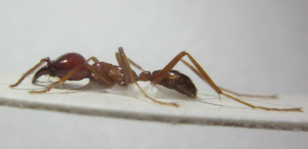 Ciao, Mattia! La specie temo sia difficile dirla, purtroppo la tassonomia dei Dorylus a livello specifico ha due grosse difficoltà al momento: giace un po' dimenticata da Dio e dagli uomini e molte specie, essendo ipogee, sono note solo attraverso i maschi, che sono ovviamente gli unici che si fanno vedere regolarmente alla luce del sole. Per quello che riesco a vedere qui però (10 antennomeri e flagelli relativamente molto lunghi e sottili, dente subapicale della mandibola ben sviluppato e aguzzo) credo che parliamo di sottogenere Anomma e quindi non D. ocellatus. |