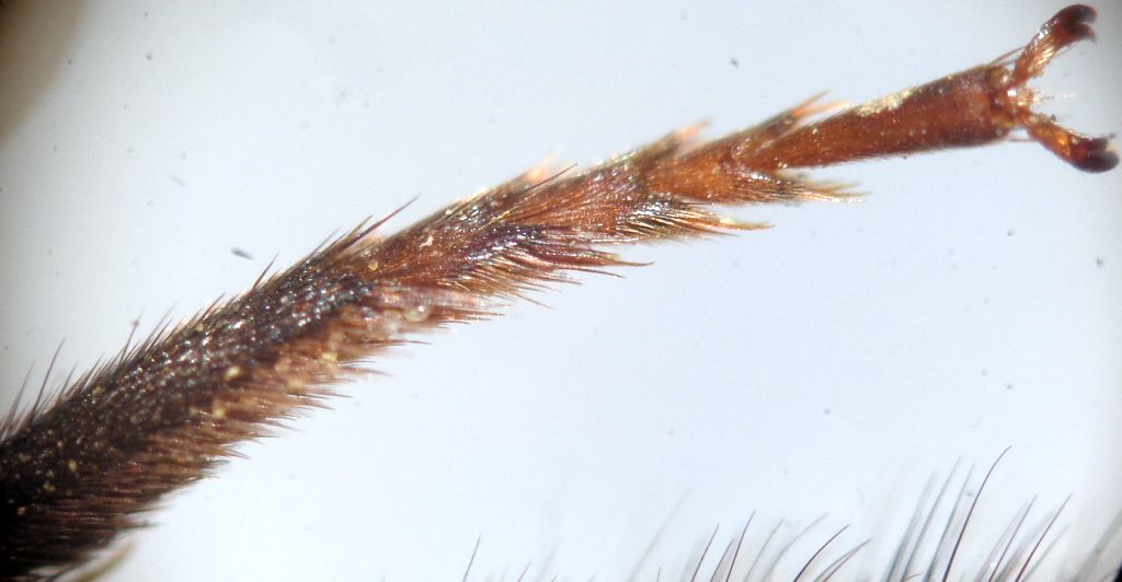 Grazie Pietro, dunque non vedo alla base mandibolare denti e il bordo interno è solo sinuoso; le zampe, simili, sono nere, con tarsomeri 2 e 3, in particolare, superiormente fulvi con margini e punte nere; inferiormente i 4 ultimi tarsomeri sono rossastri, anche nei tegumenti. Unghie apicalmente oscurate. sicula non è citata di Croazia!?