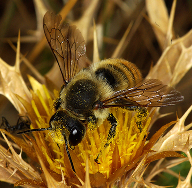 Sono tutti scatti fatti nel giro di una trentina di minuti in uno spazio di 2-3 metri. Delle varie piante presenti posso confermarti che tutti gli esemplari frequentavano solo questi cardi del genere Carlina. Purtroppo stavano sempre con la testa tuffata nel polline e questo non aiuta certo.