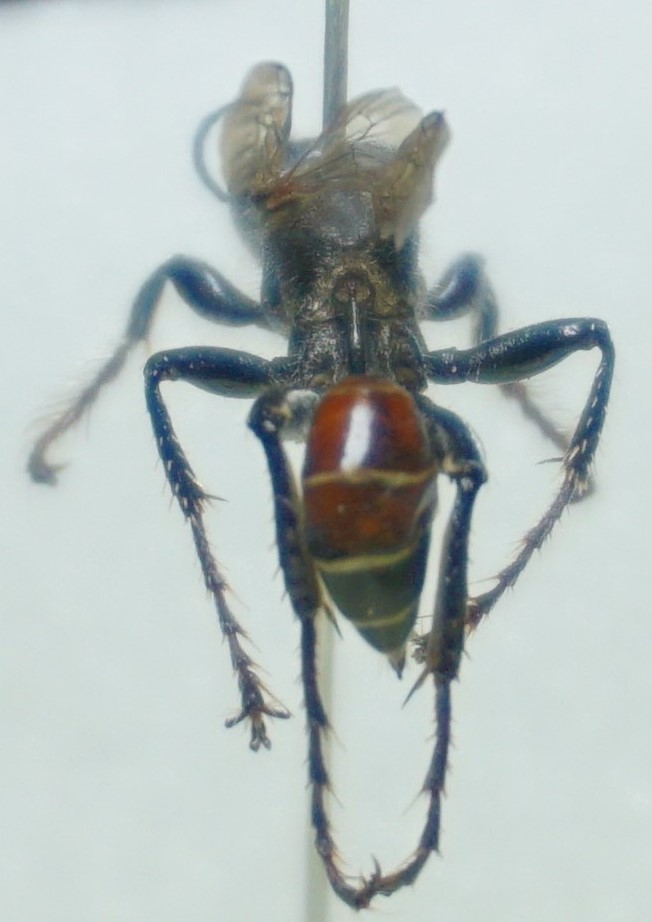 Sphecidae: femmina di Prionyx; se: - metapleura liscia, spine delle zampe post. brune = Prionyx kirbii (van der Linden, 1827); - metapleura striata trasversalmente, spine delle zampe posteriori bianchicce = Prionyx lividocinctus A. Costa, 1858)