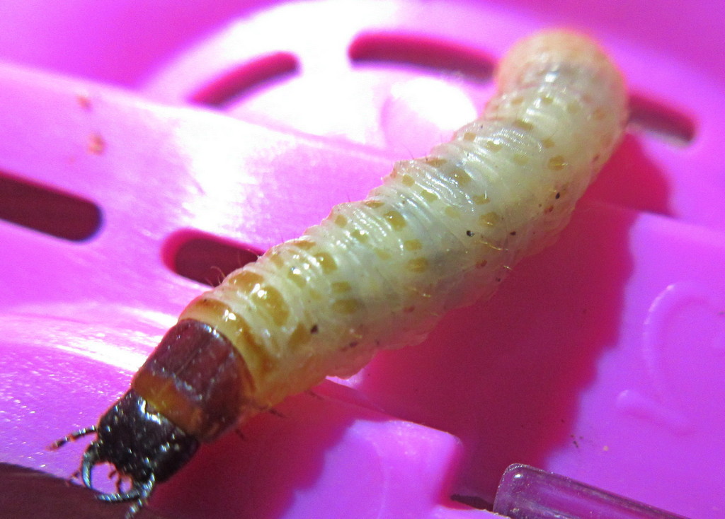 Questa larva finalmente è diventata un bellissimo adulto (strano che ce l'abbia fatta) di Hister quadrimaculatus/illigeri. Appena posso posto una foto di questa bellezza lucente.