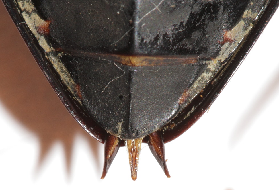 ...Per Marcello. La bestiola è davvero il coleottero acquatico più grande che abbia mai visto. Per la spina, cerco di fare un dettaglio dell'angolo suturale.