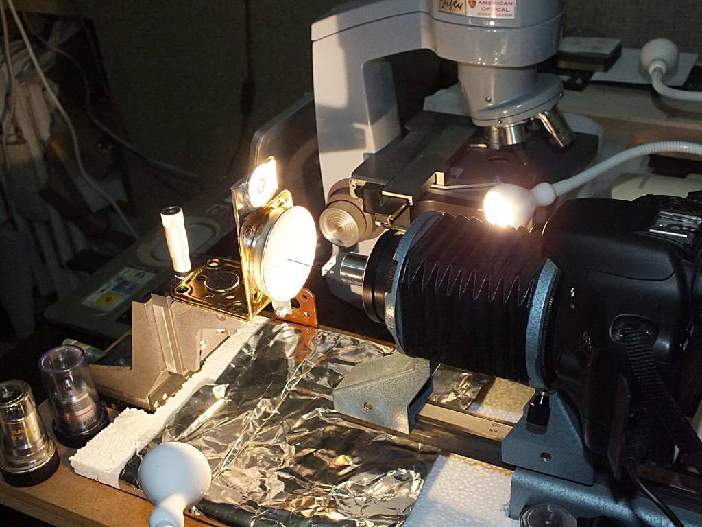 Loriscola ha scritto: Bella foto davvero  .....attualmente, che illuminazione usi ? Te lo chiedo perché ho un nuovo microscopio  (nettamente migliore), ma non riesco a trovare ....la luce giusta ! Se te le dico, ti metti a ridere. Dopo aver provato innumerevoli pannelli diffusori e riflettenti, alla fine, per insetti come questo, ho visto che i risultati migliori li ottengo con due pezzi di carta bianca di quella che mettono di solito all'interno delle scarpe nuove. La stendo un po' (se rimane un po' stropicciata è anche meglio, e ne metto un foglio a cavallo del supporto dell'insetto, da una parte, e dell'obiettivo, dall'altra, e poi sopra al primo metto un secondo pezzo di carta, per diffondere meglio la luce. Sotto l'asse insetto-obiettivo (uso un sistema orizzontale) metto un pezzo di carta bianca, o di polistirolo espanso, o di carta stagnola, in modo che rifletta parte della luce verso l'insetto, che altrimenti dal lato basso sarebbe un po' più scuro. L'illuminazione è con due lampade led Ikea, una a destra e l'altra a sinistra dell'asse (ovvero una avanti e una dietro, rispetto alla posizione dell'insetto, che sta di traverso. Poi faccio una foto, così si capisce meglio.
