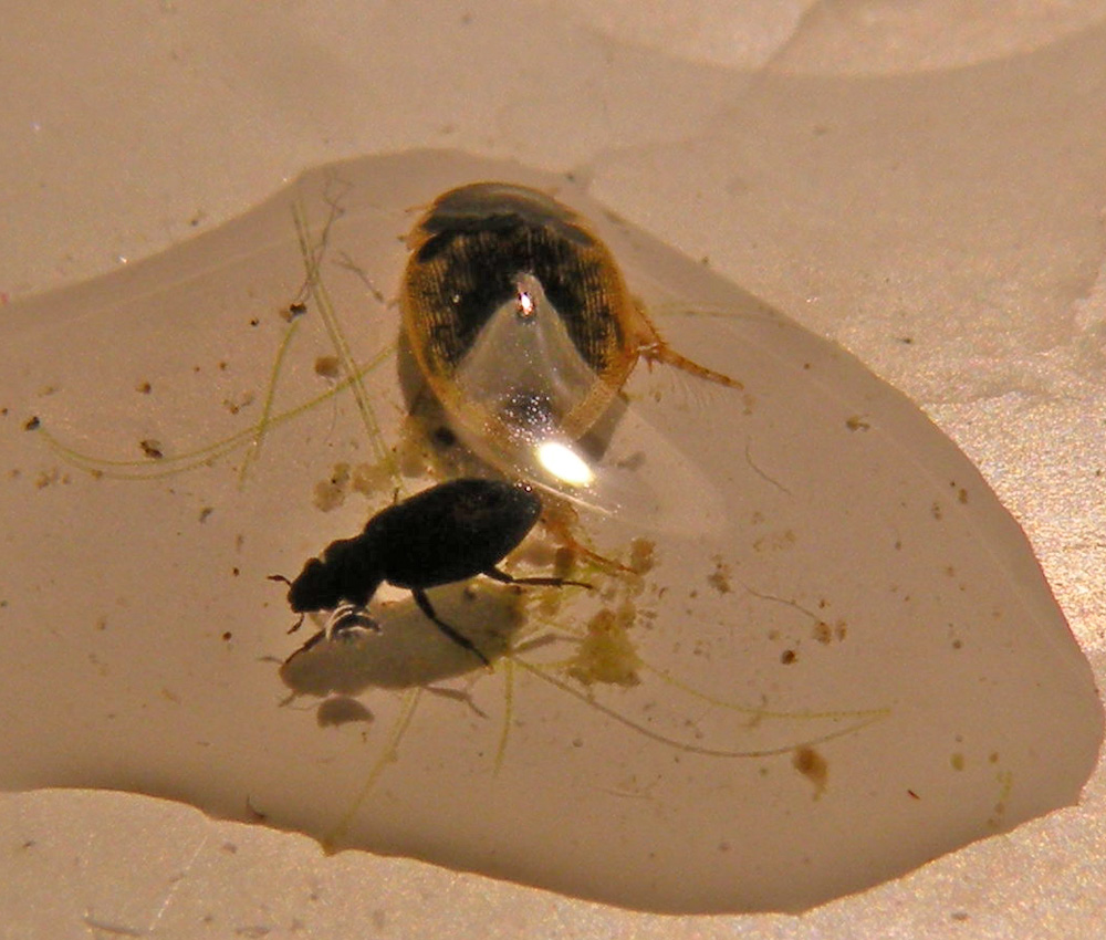 Tornato a casa, vi ho trovato in mezzo anche alcuni insetti, non so se acquatici o terrestri... le loro dimensioni, pochi millimetri, mi hanno reso difficile fotografarli sia con la macro (troppo piccoli), sia al microscopio ottico, sia pure al minimo ingrandimento (troppo grandi).