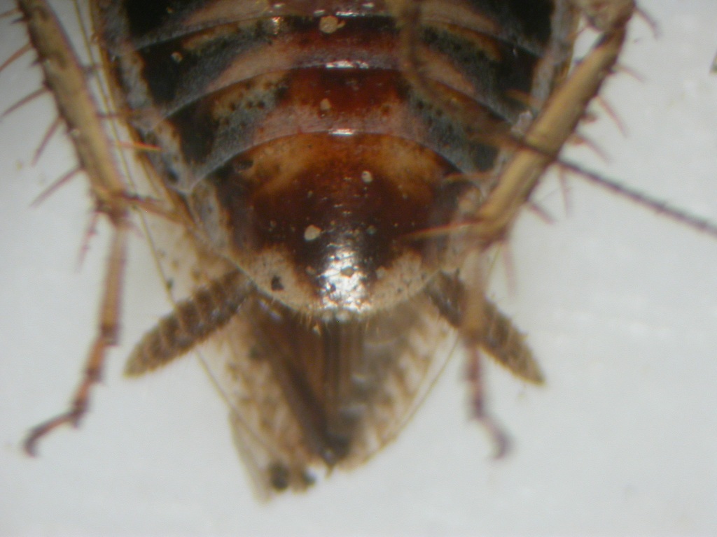 Durante una passeggiata notturna presso le dune di Piscinas (Arbus-Sardegna occidentale, 6-7 settembre 2010), ho trovato vaganti al suolo alcuni Ectobius, altri sono arrivati al lume: questo è lungo 6 mm, ho fotografato anche lo stilo. Le fossette no , dovrei distendere l'esemplare in uno stenditoio e non vorrei rovinarlo....