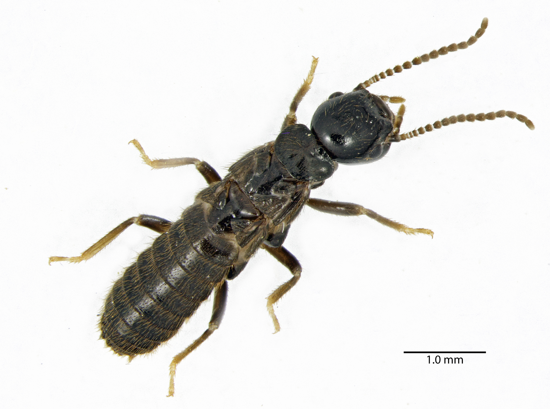 Stamattina mi sono accorto che sul pavimento di casa mia gironzolavano diversi piccoli insetti (misurati dopo: 5 mm) la cui forma allungata mi aveva fatto pensare in un primo momento a coleotteri Stafilinidi.