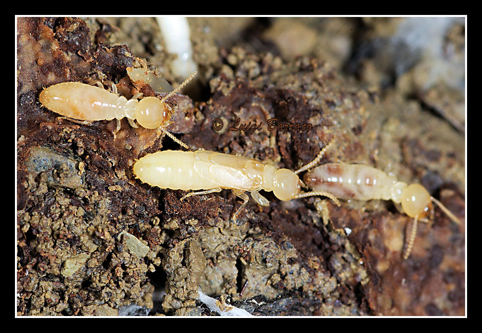 Avrai notato inoltre che nella tua quarta foto vi è un'esemplare dal pronoto ampio che potrebbe ricordare una Kalotermes: esso però non è un'operaio, ma una ninfa di reale, riconoscibile dagli sviluppatissimi abbozzi alari.