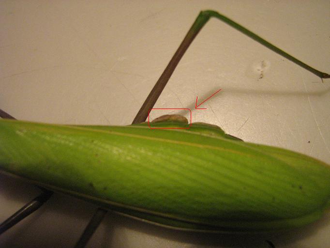 Ma potrebbe anche essere banalmente l'effetto di uno schiacciamento; per esempio, il morso di una lucertola che poi ha lasciato la presa quando la mantide ha reagito.