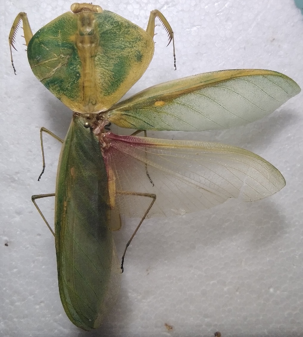 La specie che vi presento è Choeradodis rhombicollis (Latreille, 1832), facilmente distinguibile dalle altre del genere per avere le coxe anteriore con il margine anteriore finemente denticolato invece che munito di grossi dentelli distanziati.