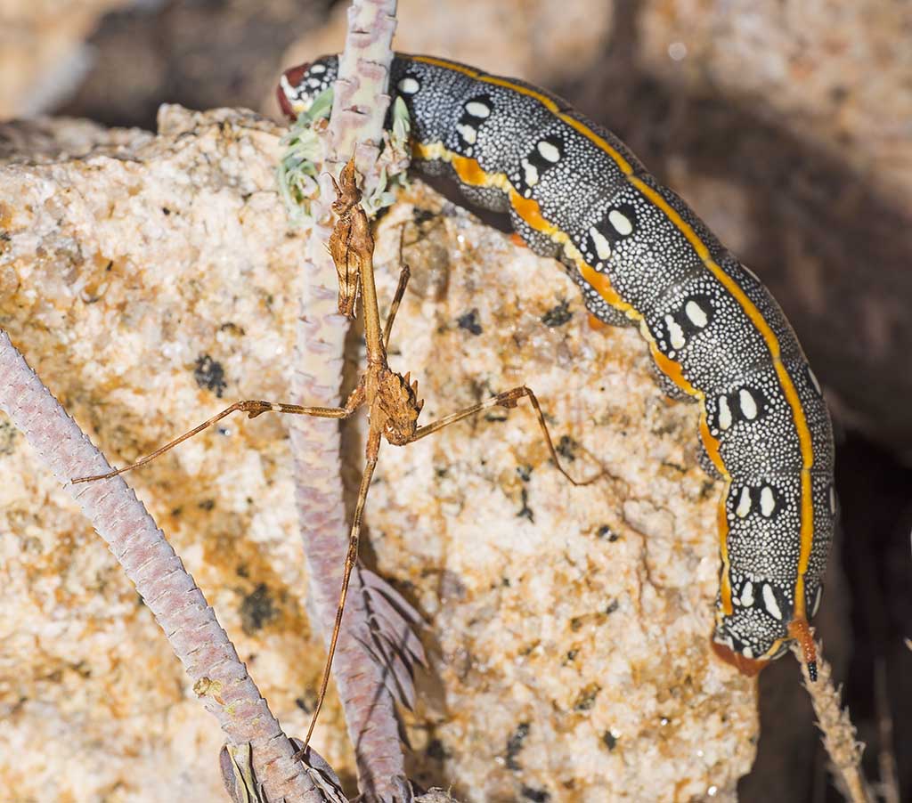 Empusa pennata (Thunberg, 1815) - Empusidae e bruco di Hyles dahlii (Geyer, 1827) - Sphingidae Macroglossinae Macroglossini