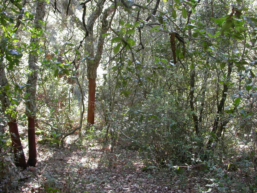 Qualche foto dell'uscita odierna: l'ambiente, bosco misto di leccio e sughera, con corbezzolo, erica arborea e fillirea: