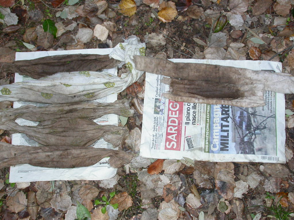 Ciao Mimmo, il setaccio ha maglie da 6 mm e nell'acqua metto quello che passa attraverso. In questo modo nei sacchi si mette solo terra priva di pietre e pietroline, radici, foglie, pezzi di legno!! Poi carico i sacchi nello zaino e li porto via!