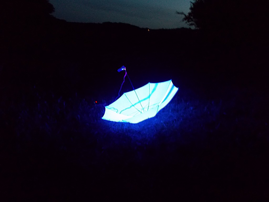 Vi sono poi led a lunghezza d'onda minore, ma praticamente introvabili, ed in ogni caso, non convengono, perchè il prezzo aumenta esponenzialmente con la diminuzione della lunghezza d'onda, e gli effetti negativi sulla nostra vista pure. Per cui ritengo che i migliori, per i nosri scopi, siano quelli compresi tra 360 e 405 nm. In particolare, quelli intorno a 390-405 nm (come quello usato da Daniele Sechi) sono quelli che preferisco, perchè attirano, costano una cifra ragionevole, si trovano facilmente e non danno quasi nessun fastidio alla vista (molto meno di una fluorescente black light). Importante è non farsi influenzare dalla luce apparentemente debole dei LED UV, che dipende da ciò che percepisce la nostra vista, ma gli insetti hanno una gamma visibile diversa dalla nostra (ma questo, chiunque abbia un po' di esperienza di ricerca notturna alla luce, lo sa già molto bene).