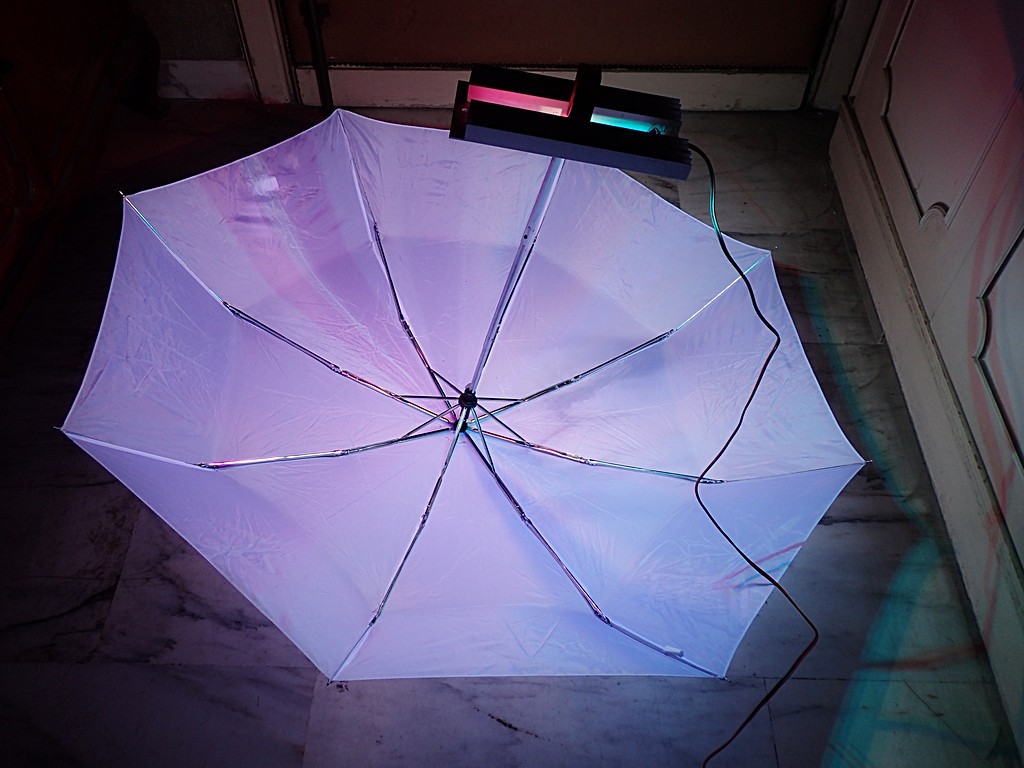 Il sistema montato sul mio solito ombrello bianco: