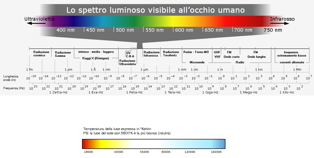 Mi sembra un buon punto di partenza, aggiungo un link. all'interno di questo volantino pubblicitario c'è un bello specchietto per chi come me non ha molta dimestichezza con nm e gradi kelvin.