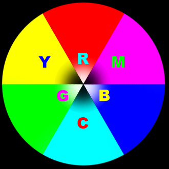 Una regola che vale per gli artisti e la loro tavolozza di colori fisici, a olio, acrilici ecc, ma non per la computer grafica dove i colori sono composti da singoli punti di colori “digitali”. In effetti i colori primari per la riproduzione dei colori sullo schermo sono il Rosso, Verde e Blu. Per il resto cambia poco, perché miscelando i colori primari per computer grafica si ottengono esattamente le tinte per le stampanti a colore.