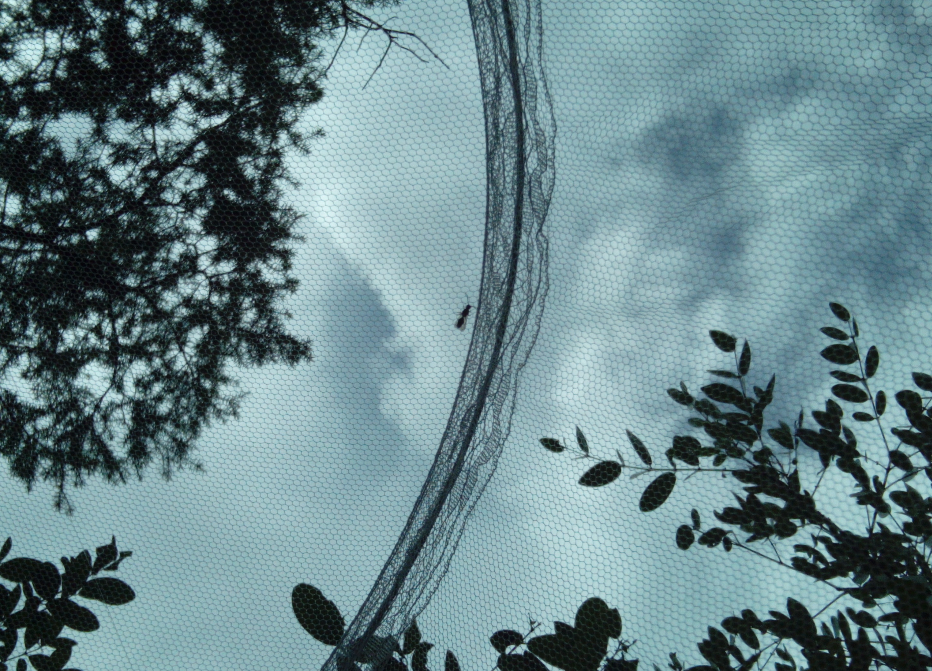 I risultati sono stati sconfortanti. Solo alcuni imenotteri sono rimasti nella rete. Ma bisogna considerare che l'ho tenuta in funzione solo un paio d'ore, che molto dipende dal punto e dalla direzione in cui la si monta, e che quando sono tornato a riprenderla, uno dei tiranti che reggevano gli angoli superiori dell'entrata si era rotto, e l'apertura era parzialmente chiusa (c'era vento ed avevo usato una cordina troppo sottile). Inoltre quel giorno non girava quasi nulla.