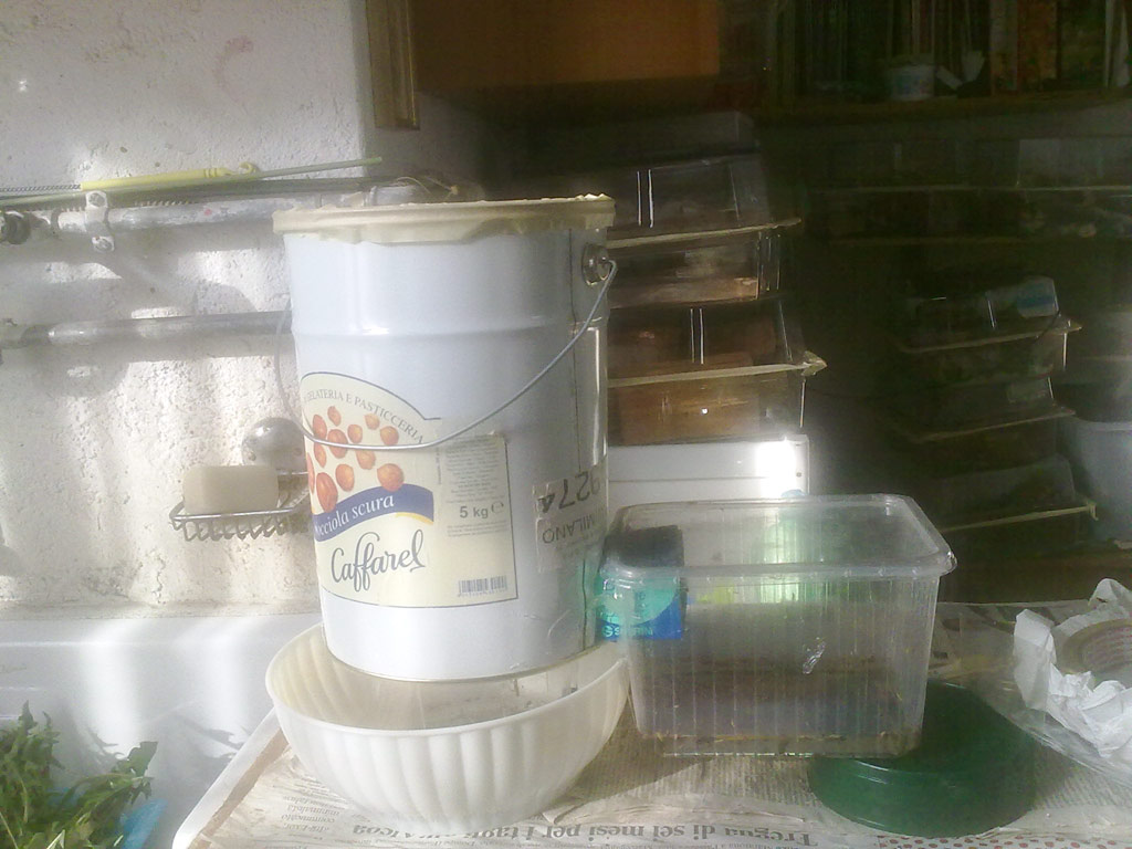 Visto che parliamo di strumenti fatti in casa, vi faccio vedere quello che uso io per il materiale da sfalcio.... Infatti non avendo quasi mai abbastanza tempo per falciare, controllare, aspirare e rifalciare, di solito falcio un po, scarico tutto in una vaso ermetico e ricomincio. Arrivato a casa metto tutto qui dentro e 1/2 giorni dopo tutti gli insetti sono nella bacinella sottostante e laterale!