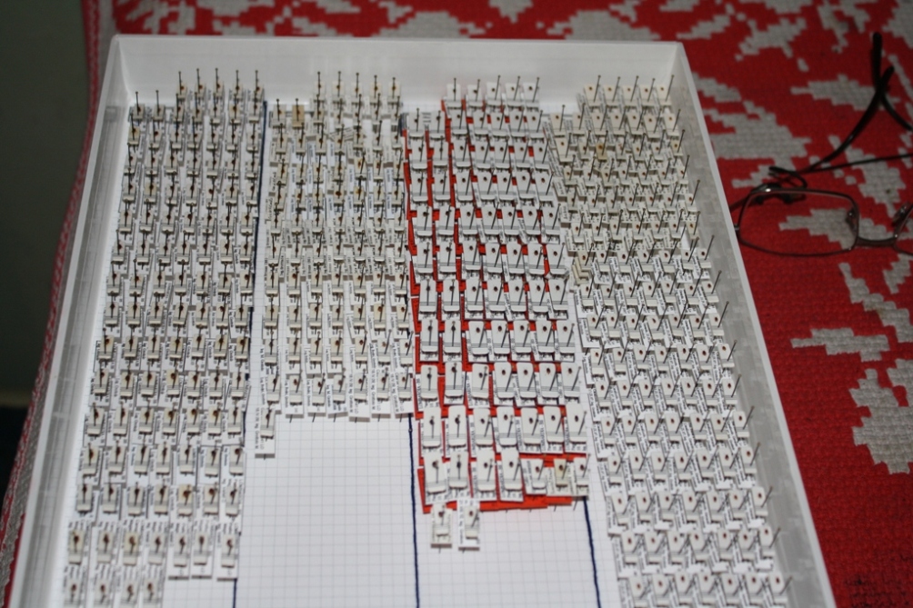 Io inserisco le specie nelle cassatte entomologiche in senso verticale, così maneggio meglio gli insetti.