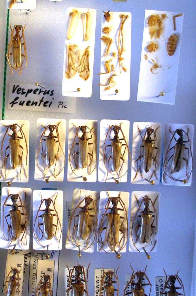 La mia collezione di studio è impostata con criteri eminentemente pratici e finalizzati alla facilità di utilizzo in funzione dei lavori in preparazione, Quindi, materiale preparato in maniera non sempre perfetta (se devo studiare le serie, non posso star lì a cercare il pelo nell'uovo quando devo preparare centinaia di esemplari), spesso esemplari rovinati (se ho l'unica femmina conosciuta di una specie non posso certo cestinarla perchè le manca qualche squama....), cartellini di tutte le fogge e dimensioni, spilli bianchi, neri, anticorro, con testa in acciao o in nylon, ecc. ecc.