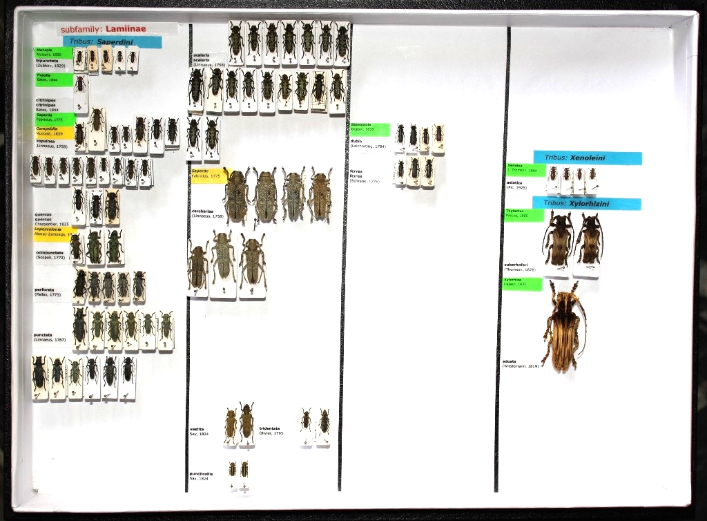 Nei mesi scorsi, dopo aver costruito un po' di scatole, ho risistemato la collezione dei Cerambycidae terminando proprio oggi. Ecco come si presenta.