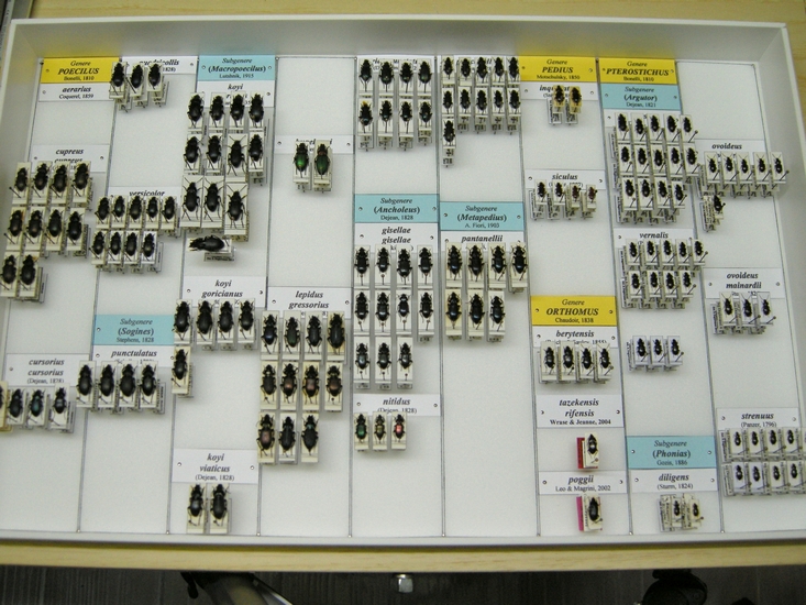 Per sapere la specie, oltre ad essere scritta nel cartellino Bianco sopra, ogni esemplare riporta il relativo cartellino sotto, cosi chè se devi prendere esemplari di una specie per confrontarli con un'altra quando li devi rimettere a posto è abbastanza leggere il cartellino sotto ;)
