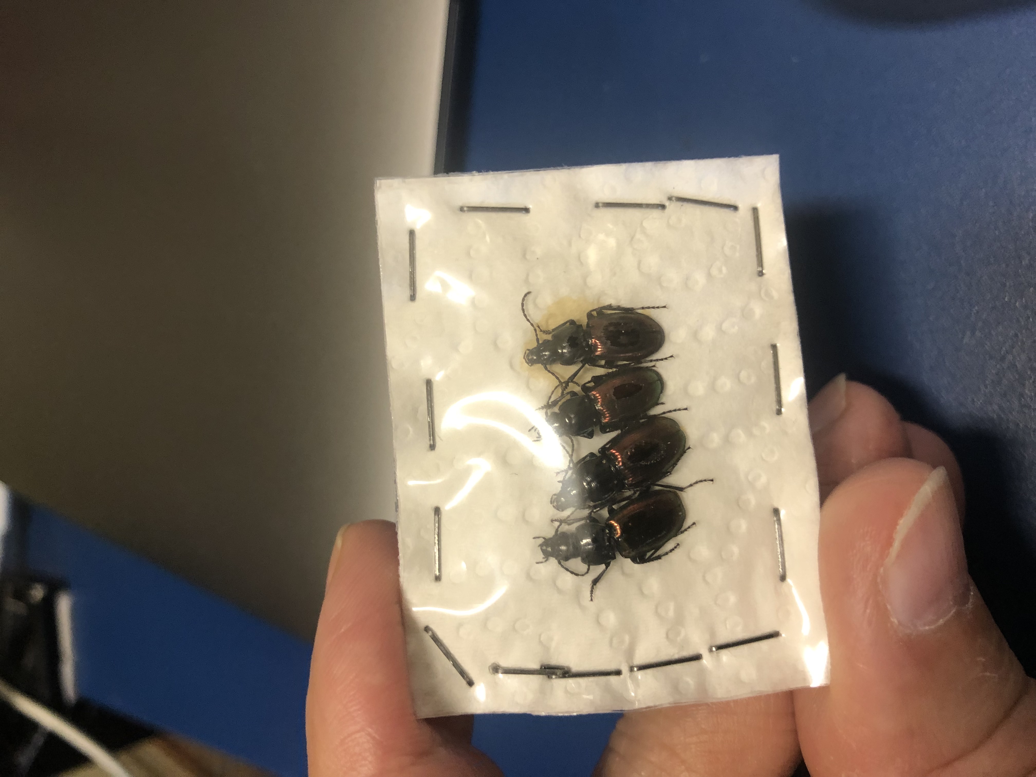 Occhio però a quando togli la pellicola, perchè molte volte (siccome questi essudano grasso) rimangono attaccati con le elitre e potresti avere problemi se tarsi o antenne si attaccano o al bambagio o allo scottex.