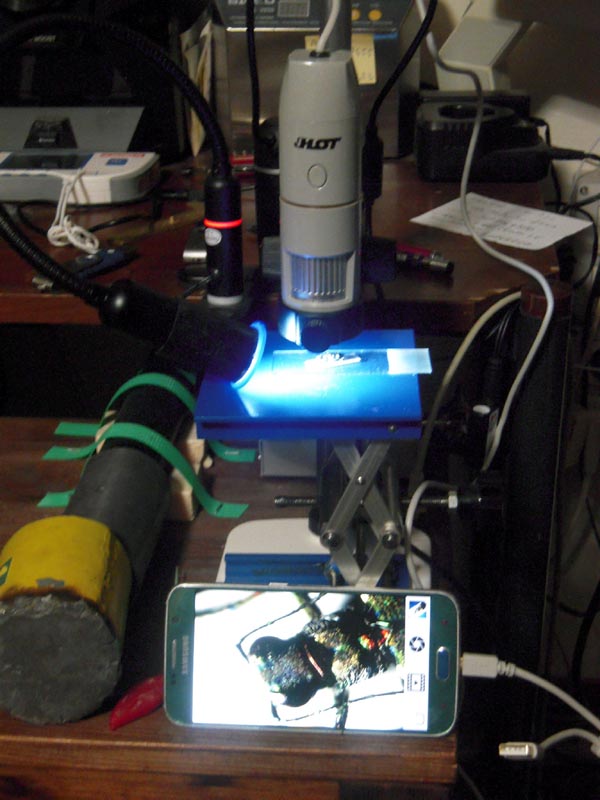 L'idea che sto seguendo è usare lo smartphone, una lente addizionale macro e una sorgente di illuminazione che possa fare anche da base di appoggio: