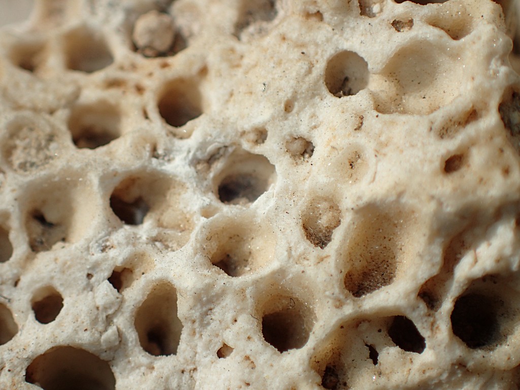 Una madrepora o corallo fossile. Ogni cavità ha un diametro medio intorno a 3 mm