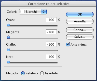 Il controllo, in Photoshop, si trova in Immagine > Regolazioni > Correzione colore selettiva.........