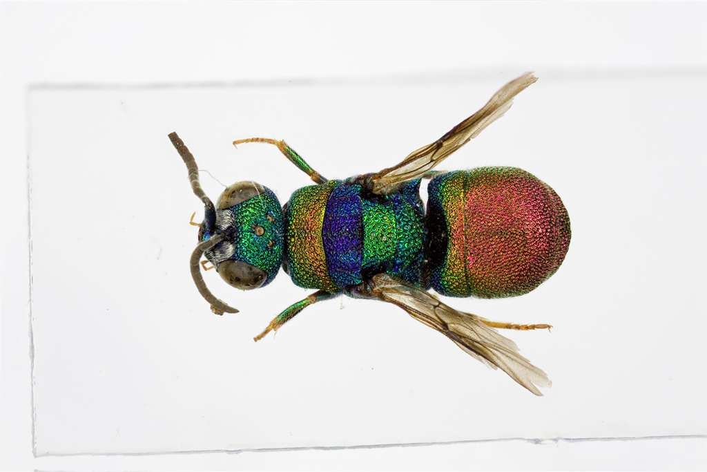 Allego qui un primo esperimento. Si tratta di un bellissimo piccolo criside, Hedychridium vachali Mercet 1915, della Spagna. I due stack sono il risultato di 15 (fluorescenza) e 14 (LED) scatti.