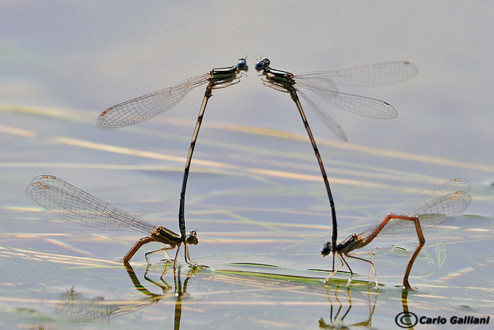 o qualche preliminare come in questo caso di volo di gruppo di cercion lindeni dove i due maschi che sembrano fare da testimoni aspettano l'occassione buona per sostituire il maschio accoppiato